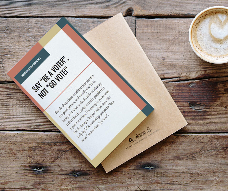 We know that showing eyes on a poster makes people pay their tram fare. We know people hate feeling guilty. We know getting a message from people who talk like you is more compelling.We've made a stack of inspirational cards based on current scientific research on anti- and prosocial behavior. We call them Hacking Kindness. People use them in workshops, with their team or individually to get new, scientifically based ideas on how to build in good behavior.The cards are available as a PDF, so you can get started taking action now.
